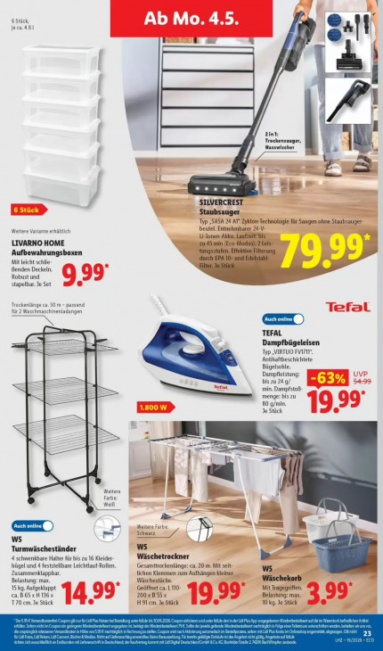 Bitte beachten Sie, dass dieser Text automatisch generiert wird und möglicherweise Fehler enthält6 Stück; je ca.4.81 al | dk TE 7 | r Md Zint: EE 1 Trockensauger, Nassı her 4 > Li và es = SILVERCREST Staubsauger Typ „SASA 24 Al". Zyklon-Technologie für Saugen ohne Staubsauger- Weitere Variante erhältlich beutel. Entnehmbarer 24-V- Li-Ionen-Akku. Laufzeit: bis LIVARNO HOME zu 45 min (Eco-Modus). 2 Leis- Aufbewahrungsboxen tungsstufen. Effektive Filterung Mit leicht schlie- durch EPA 10- und Edelstahl- ter. Je Stück Benden Deckeln. Robust und stapelbar. Je Set Trockenlänge ca. 30 m - passend für 2 Waschmaschinenladungen GEET) TEFAL ed — Dampfbügeleisen Typ „VIRTUO FV1711“, Antihaftbeschichtete Bügelsohle. u Dampfleistung: bis zu 24 g/ min. DampfstoB- mmm menge: bis zu 80 g/min. Je Stück _ == = 8 IJ, Weitere e" | = Farbe Weiß Weitere Farbe Schwarz 7 À w5 w5 >- Turmwäscheständer 4 schwenkbare Halter für bis zu 16 Kleider- Wäschetrockner bügel und 4 feststellbare Leichtlauf-Rollen. Gesamttrockenlänge: ca. 20 m. Mit seit- w5 Zusammenklappbar. lichen Klemmen zum Aufhängen kleiner Belastung: max. Wäschestücke. Wäschekorb 15 kg. Aufgeklappt Geöffnet ca. L110- Mit Tragegriffen. ca. B 65 x H136 x 200 x B 55 x Belastung: max. T70 cm. Je Stück H 91 cm. Je Stück 10 kg. Je Stück m in EN un up fü Lid ES ET Ees un CL de der Lidl PlusApp de 1 te en um ursprüngi Ki he Enz D on ren PN F Pe CU 1 Bücher Nich © ir TS U Ta geb den it L hit mn 17 DATE Ibn EH PS } =