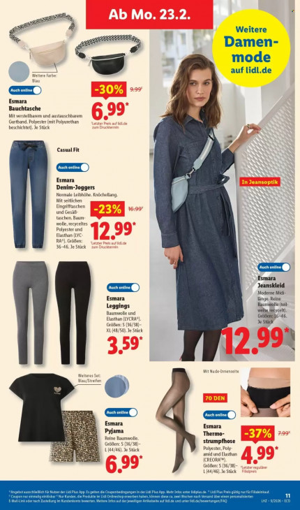 Bitte beachten Sie, dass dieser Text automatisch generiert wird und möglicherweise Fehler enthält8 is Weitere LL ul 7 LR Damen- 8 N mode = auf lidl.de Weitere Farbe Blau GERO Esmara Bauchtasche Mit verstellbarem und austauschbarem Gurtband. Polyester (mit Polyurethan beschichtet). Je Stück Nat, Casual Fit ? CEERD Esmara EA Denim-Joggers Normale Leibhöhe. Knôchellang Mit seitlichen Eingrifftaschen und Gesäß taschen. Baum- wolle, recyceltes Polyester und Elasthan (LYC- RA®). Größen: 36-46. Je Stück 5 CEO Esmara Jeanskleid CEERD Moderne Midi- Esmara länge. Reine Baumwolle (teil- Leggings Baumwolle und weise recycelt). Elasthan (LYCRA®). GröBen: 36-46. Je Stück Größen: S (36/38) XL (48/50). Je Stück \ If Mit Nude-Innenseite Weiteres Set: Blau/Streifen N u Pi GEIT) Esmara kk Esmara Pyjama Thermo- Reine Baumwolle. beid ken strumpfhose der ne Gröfen: S (36/38) A L(44/46). Je Stück Polyester, Poly- a8 Gr amid und Elasthan DA EN (CREORA'M). Größen: S (36/38)- t F L (44/46). Je Stück ich für Nut Li us Apı en in der Lidl ET Filialeink bar in haben alisierten LL E-Mail-Link nach Zustellung im In A Art